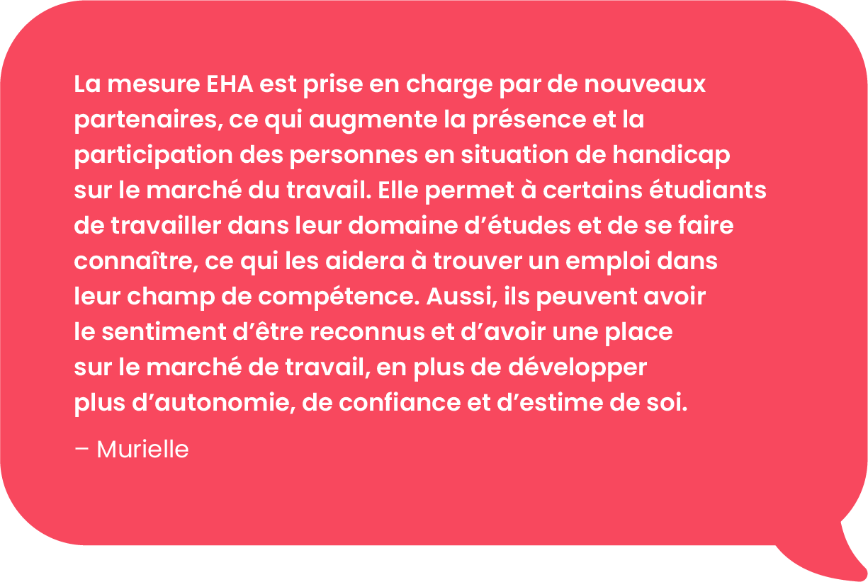 Bien qu’elle ait été mise en œuvre par SPHERE depuis seulement quelques mois, la mesure EHA montre déjà des signes positifs quant à ses effets sur l’intégration en emploi des élèves et des étudiants en situation de handicap.